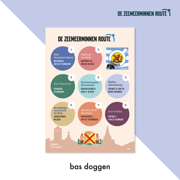 Voor de afdeling Steenbergen van de Volvo Klassieker Vereniging (VKV) heb ik de stempelkaart ontworpen voor de Zeemeerminnen route. Deze kaart leidde tachtig equipes met klassieke Volvo-oldtimers langs acht 'tijdloze schoonheden' en de rijke historie van de gemeente Steenbergen.